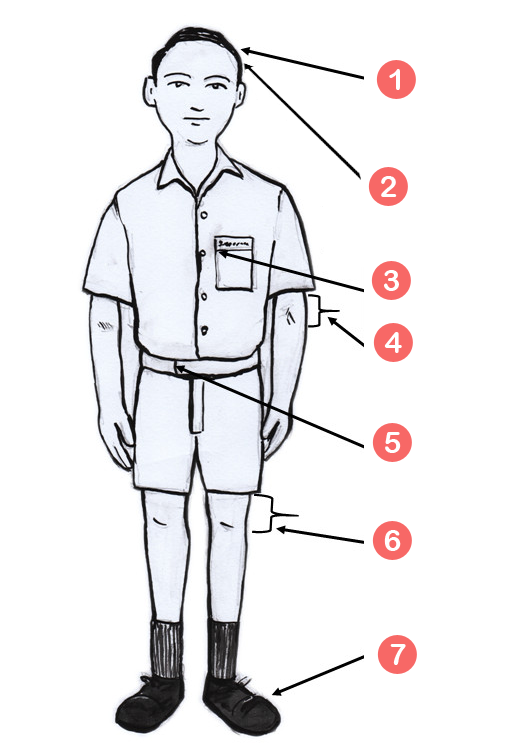 4.1 6- 9 ශ්රේණිය දක්වා පිරිමි ළමුන් කොට කලිසම් ඇඳිය යුතුය. එය තද හිල් පැහැ විය යුතුය.