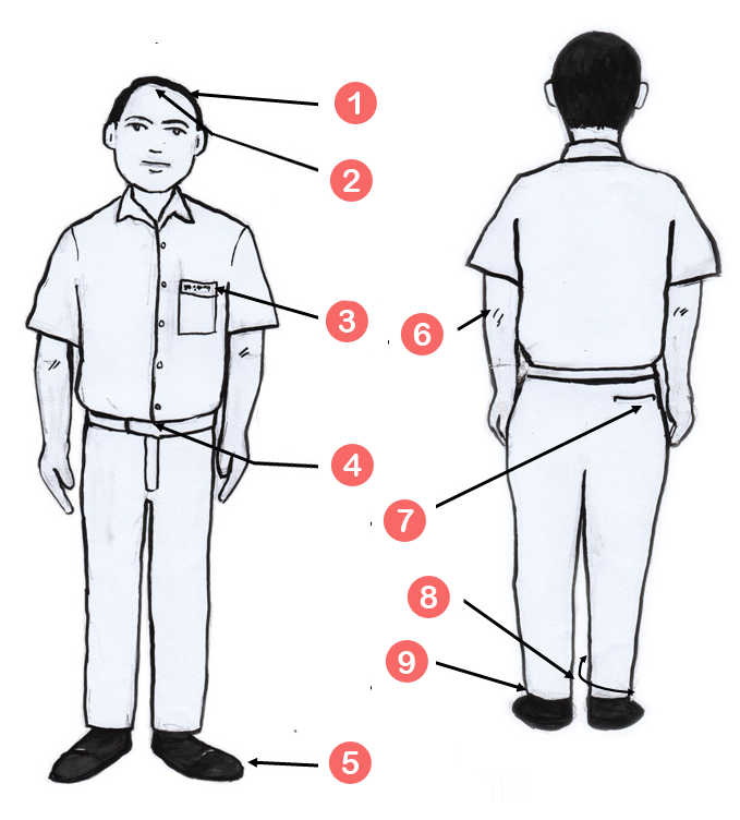 2.5 කමිසෙට රැලි යෙදීම, වර්ණ හා විවිධ බොත්තම් ඇල්ලීම, ඇතුළු පැත්තට සාක්කු ඇල්ලීම නොකළ යුතුය.