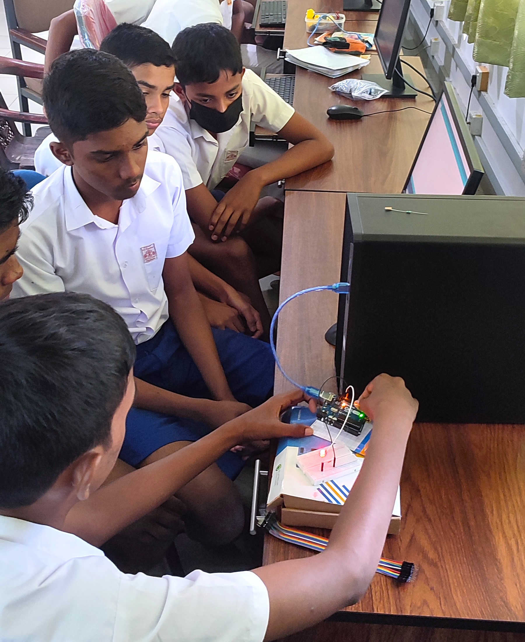 2023/11/27 දින ගිරිඋල්ල කලාප අධ්යාපන කාර්යාලයේ තොරතුරු තාක්ෂණ අංශය මඟින් සංවිධානය කළ මෙම වැඩසටහනට කලාපයේ විවිධ විද්යාල වලින් සිසුන් පස්දෙනා බැගින් සහභාගී විය.මෙහිදී Arduino සම්බන්ධ කරගනිමින් නව නිර්මාණයන් කිරීමට උනන්දුවක් දක්වන සිසුන් සඳහා පුහුණුවක් පැවැත්විය. ඒ අනුව මෙම වැඩසටහනට අප විද්යාලයේ 9 ශ්රේණියේ ඉගනුම ලබන පහත සඳහන් සිසුන් සහභාගී වී ඔවුන්ගේ දැනුම සහ කුසලතා වර්ධනය කරගන්නා ලදී.